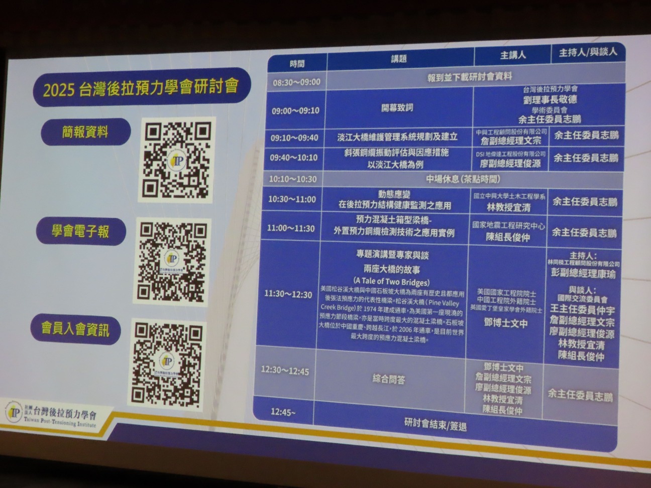 本次研討會特別邀請多位產學研頂尖專家擔任講者,共同聚焦後拉預力技術最新發展與實務應用,內容涵蓋淡江大橋工程案例解析、先進預力結構技術等前瞻議題。更榮幸邀請到世界級橋梁結構專家、美國國家工程院院士-鄧文中博士來台,親臨發表專題演講並進行與談,分享其豐富經驗與國際視野。本次研討會內容精彩可期、絕對不容錯過,歡迎踴躍報名參加,共同掌握趨勢、拓展視野!